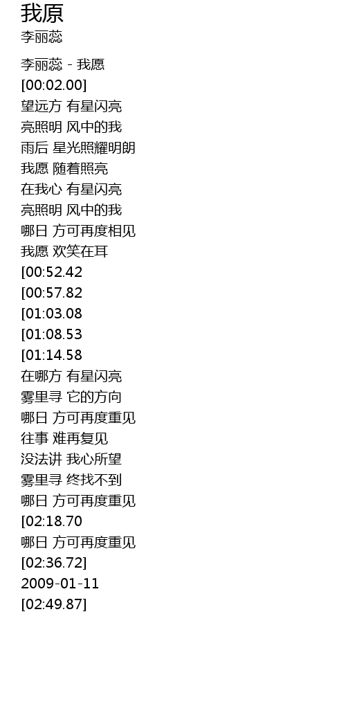 | [00:00.00] | 李丽蕊 - 我愿 |