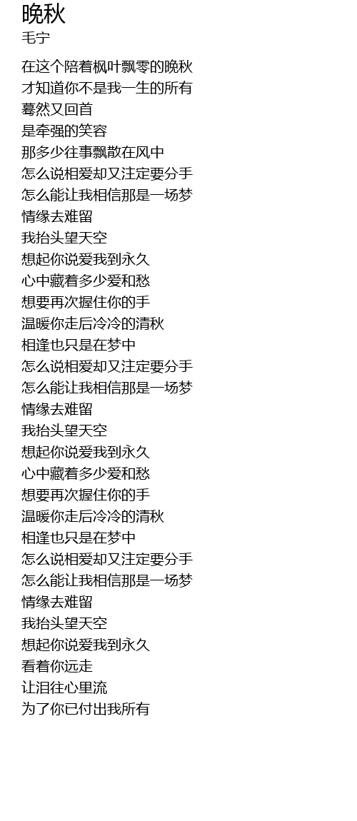 | [00:26.100] | 在这个陪着枫叶飘零的晚秋 |