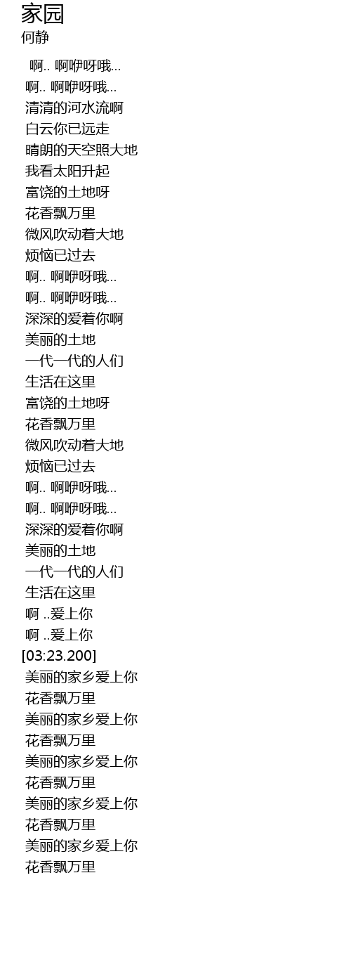 | [03:31.160] | 美丽的家乡爱上你 |