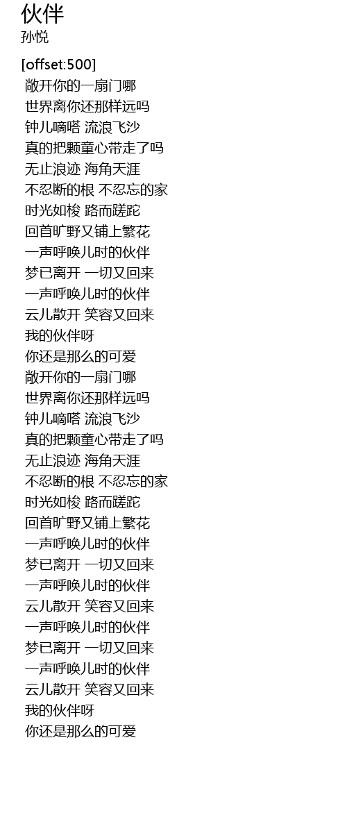 | [03:21.000] | 一声呼唤儿时的伙伴 |