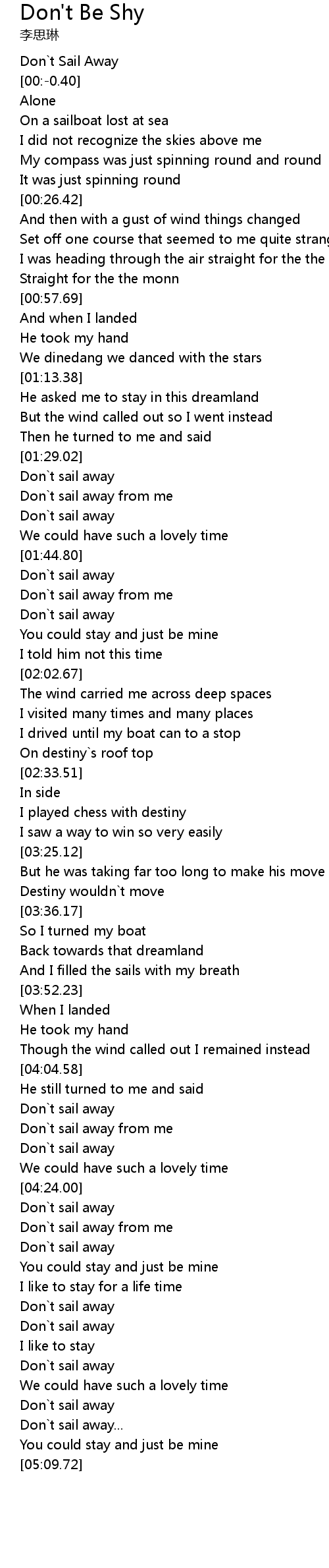 | [04:55.33] | Don`t sail away |