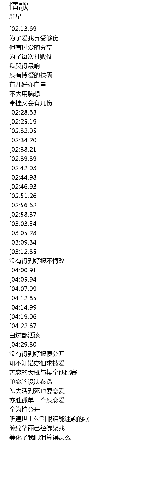 | [00:10.00][02:13.69][04:51.06] | 杨千桦-情歌(粤) |