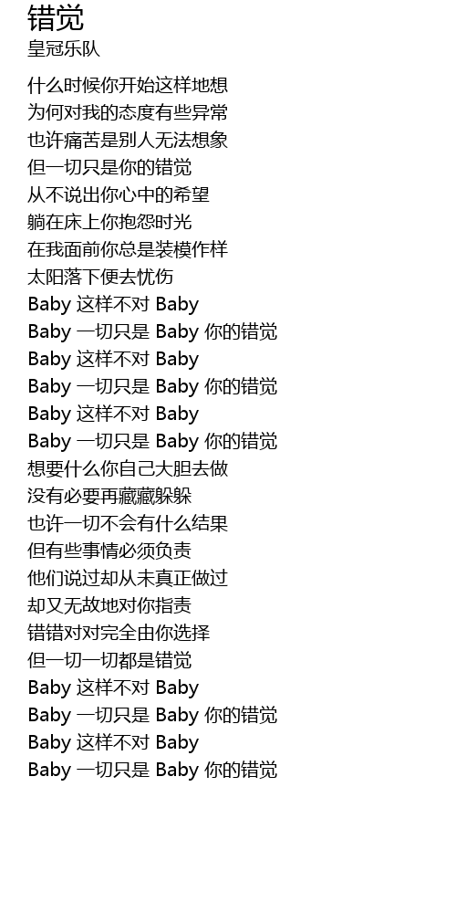 | [01:37.18] | Baby 一切只是 Baby 你的错觉 |