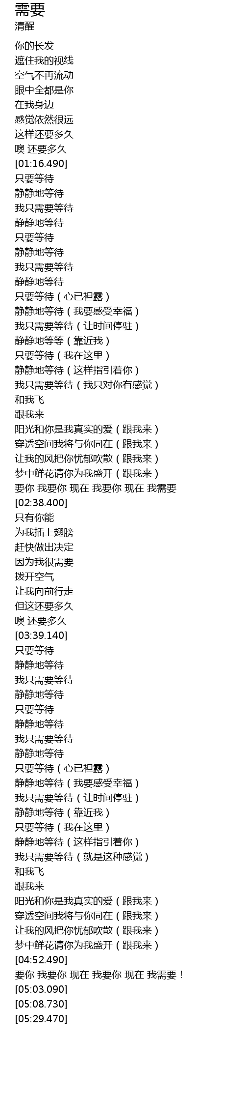 | [01:56.490] | 只要等待(我在这里) |