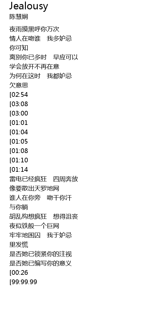 | [01:59] | 牢牢地困囚 我于妒忌 |