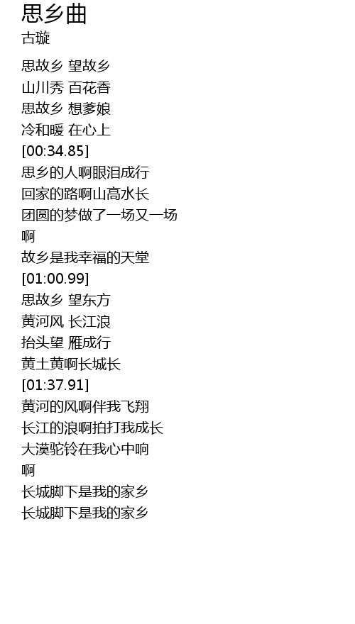 | [00:36.23] | 思乡的人啊眼泪成行 |