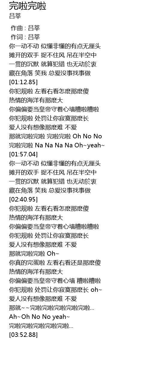 | [03:49.60] | 完啦完啦完啦完啦完啦... |