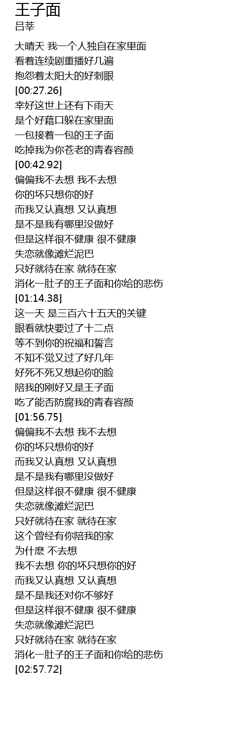 | [02:52.86] | 消化一肚子的王子面和你给的悲伤 |