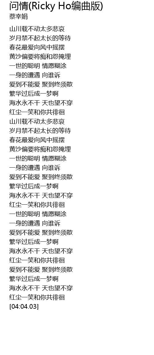 | [03:22.97] | hai shui yong bu gan tian ye wang bu chuan |