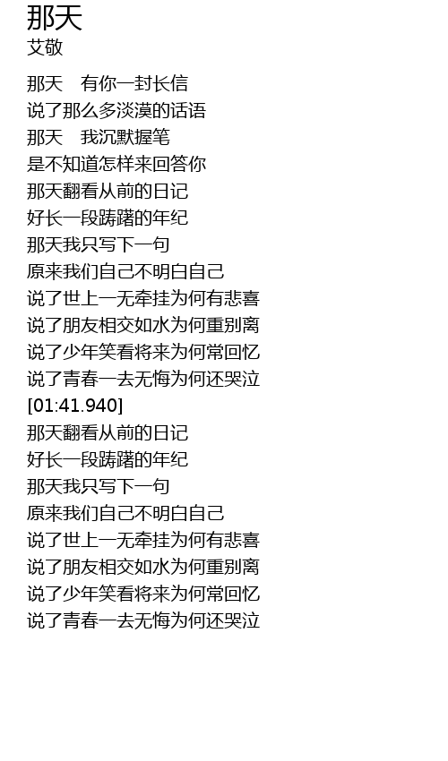 | [00:50.120] | nà tiān fān kàn cóng qián de rì jì |