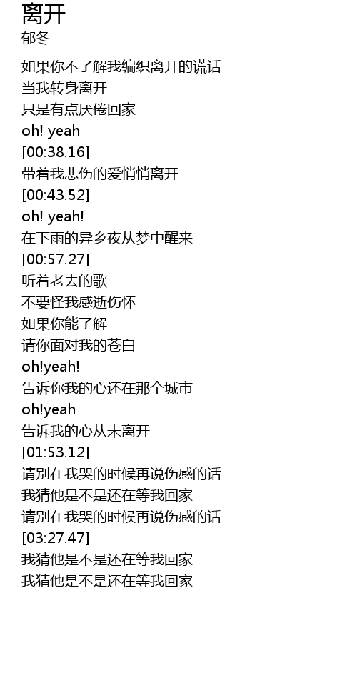 | [00:39.47] | 带着我悲伤的爱悄悄离开 |