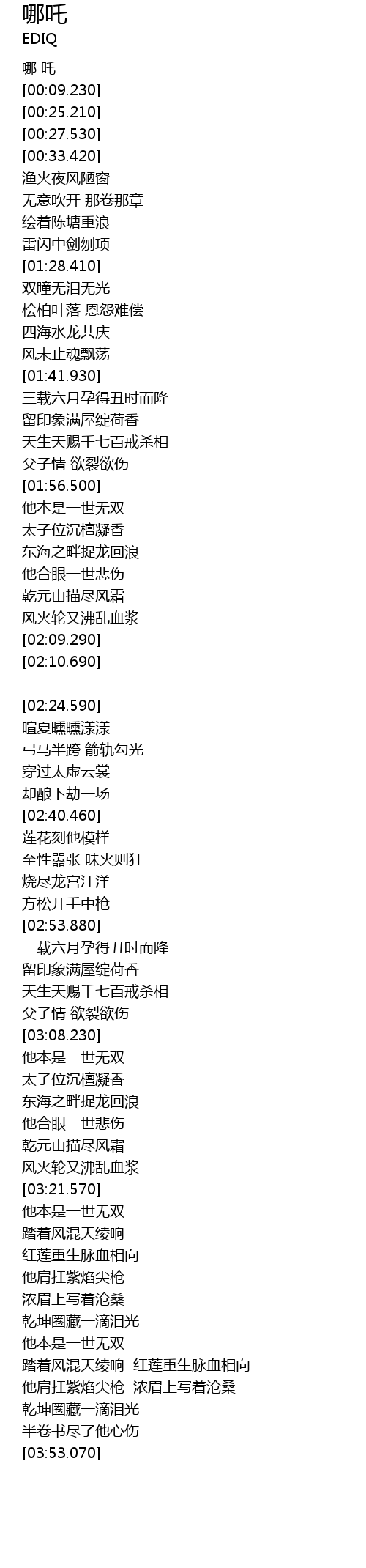 | [03:23.770] | 踏着风混天绫响 |