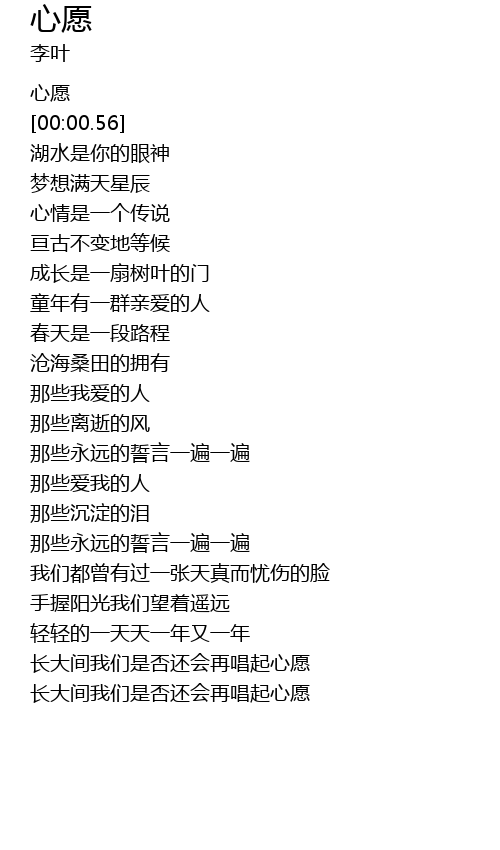 | [00:00.28] | 心愿 |