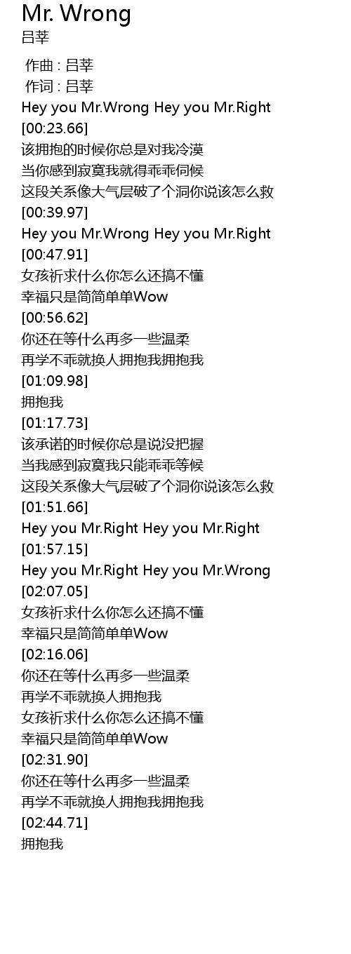 | [02:01.15] | Hey you Mr. Right Hey you Mr. Wrong |