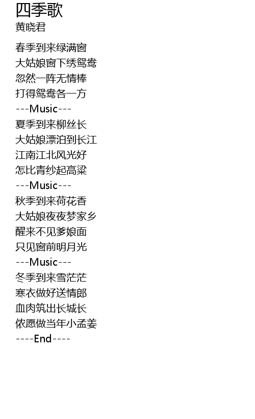 | Song | 四季歌 |