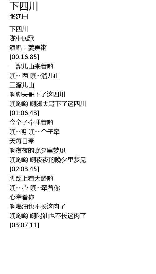| [00:53.18] | 噢哟哟 啊脚夫哥下了这四川 |