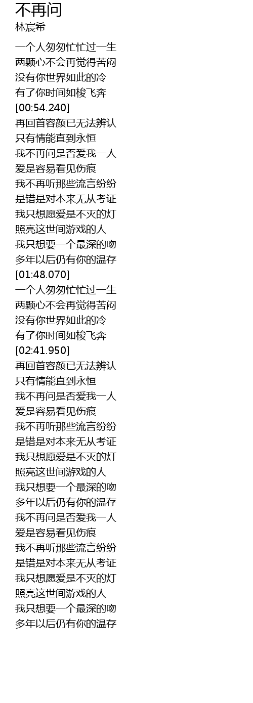 | [02:58.220] | 我不再问是否爱我一人 |