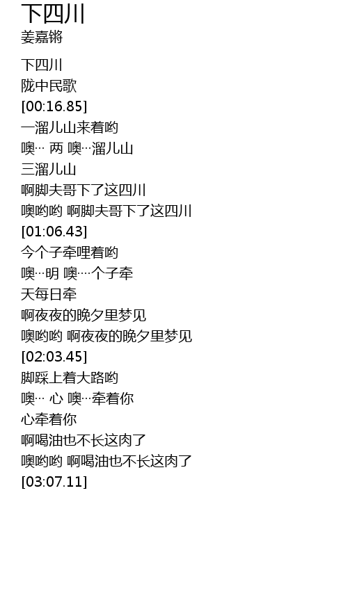 | [00:53.18] | 噢哟哟 啊脚夫哥下了这四川 |
