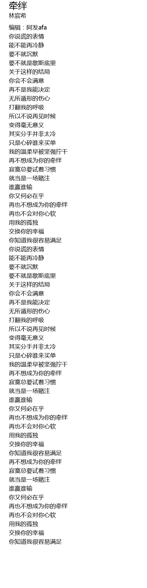 | [03:56.33] | 再也不想成为你的牵绊 |