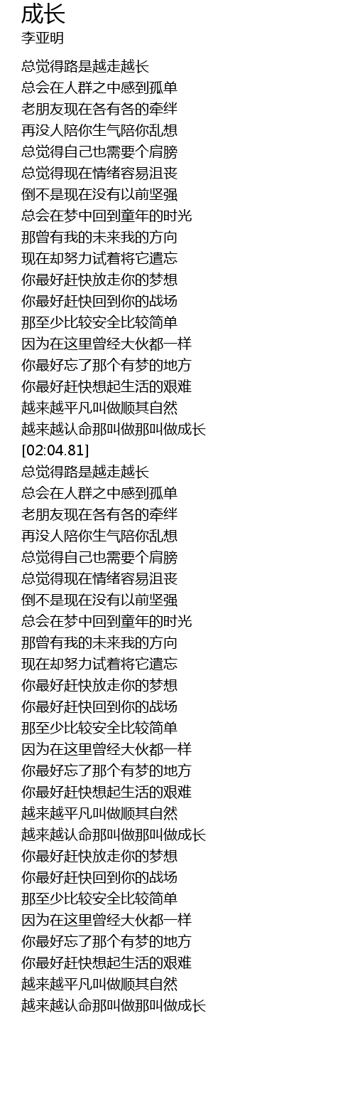 | [03:41.30] | 越来越认命那叫做那叫做成长 |