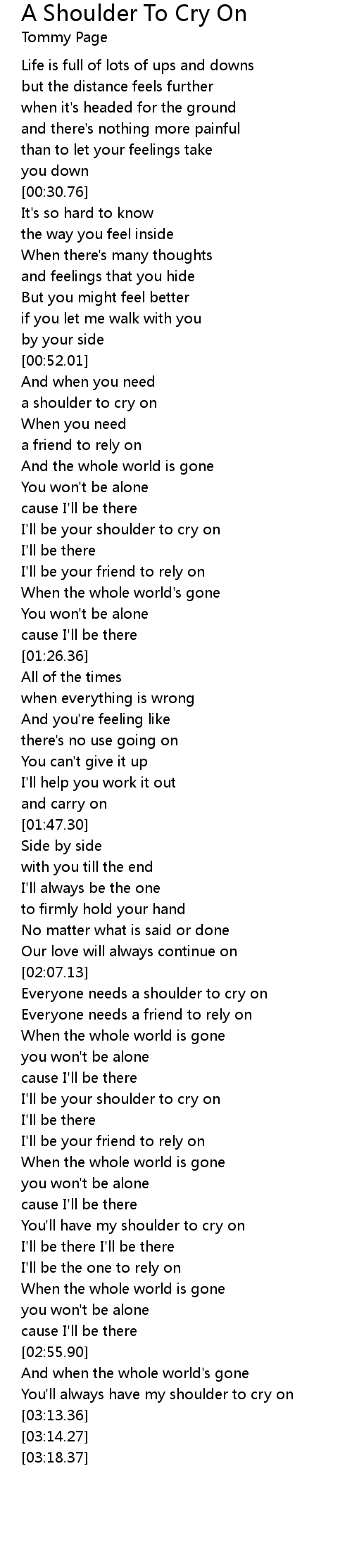 You'll always have my shoulder to cry on |