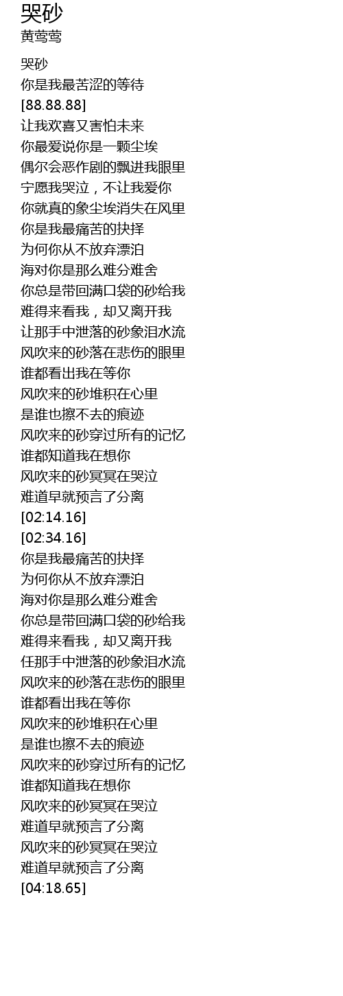 | [00:-3.62] | 哭砂 |