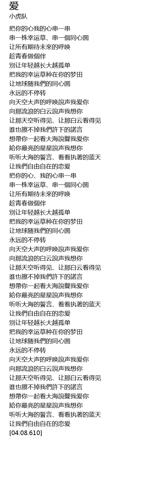 | [00:41.230] | 串一株幸运草、串一個同心圆 |