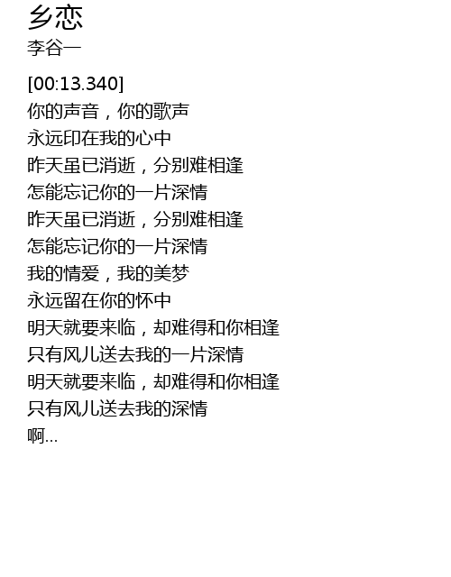 | [02:19.790] | 只有风儿送去我的一片深情 |