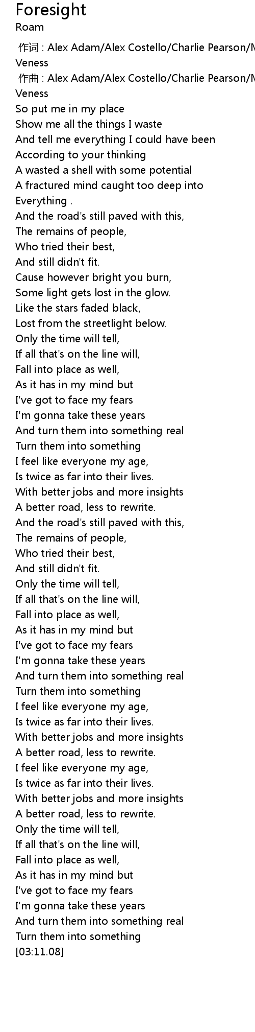 | [00:00.000] | zuò cí : Alex Adam Alex Costello Charlie Pearson Matt Roskilly Sam Veness |