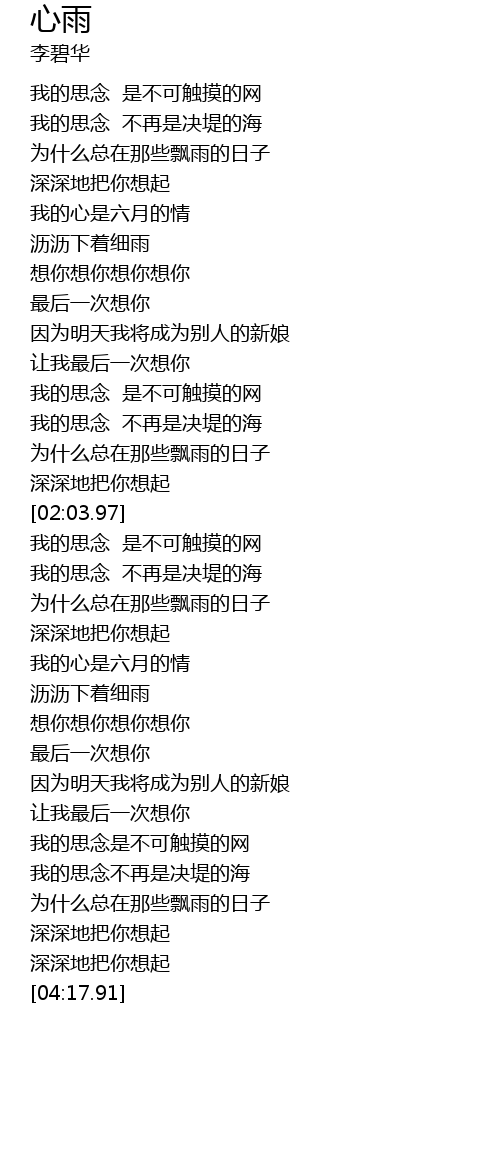 | [00:40.17] | 为什么总在那些飘雨的日子 |