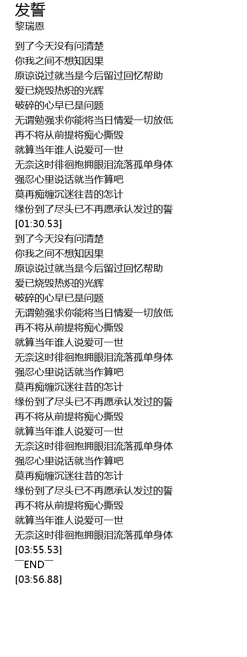 | [03:29.59] | 缘份到了尽头已不再愿承认发过的誓 |