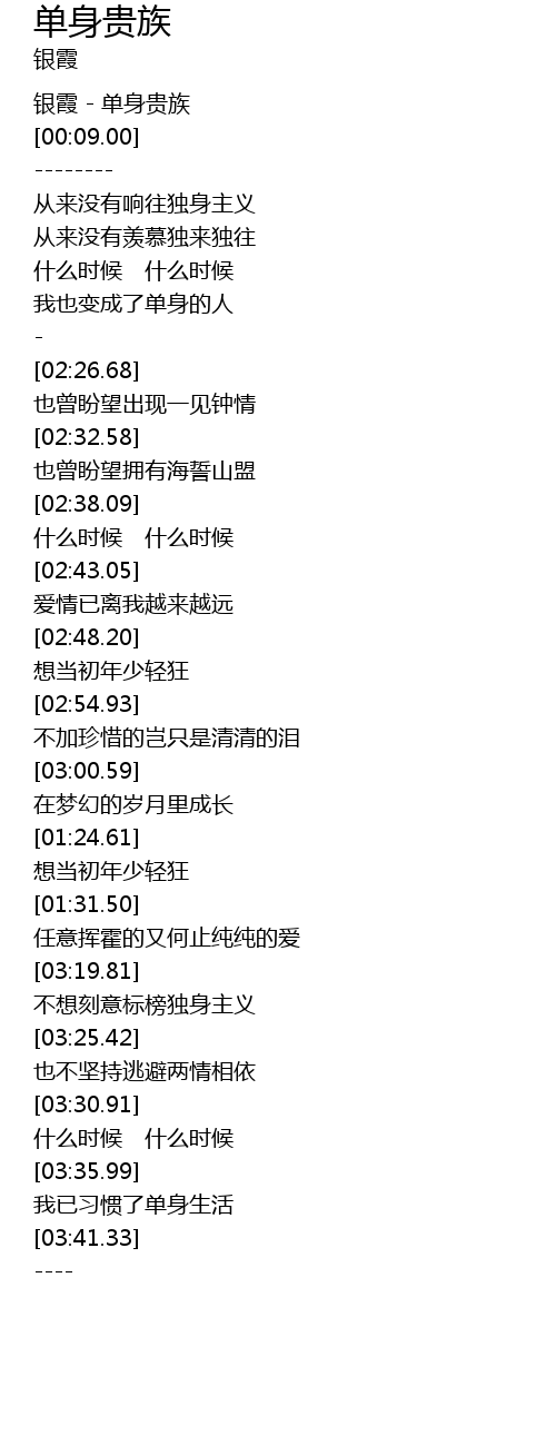 | [01:55.93] | wo yi xi guan le dan shen sheng huo |