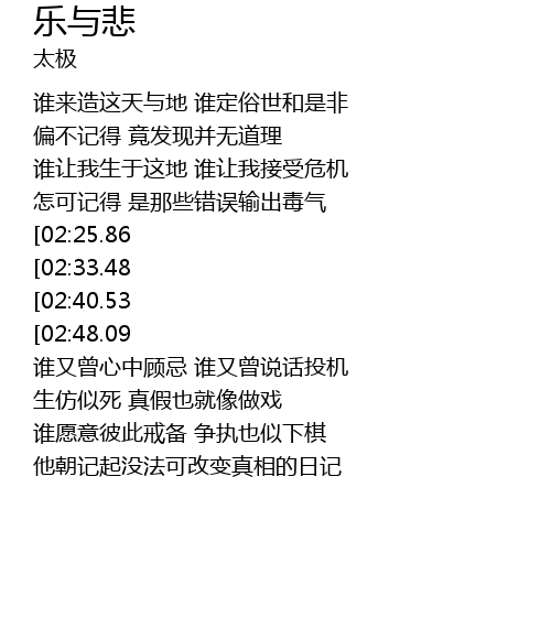 | [03:41.77][02:33.48][01:16.48] | 谁又曾提我这般人生乐与悲 |