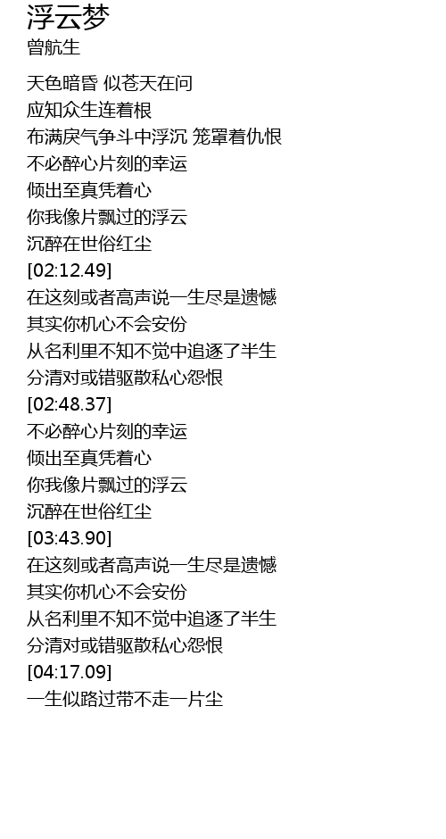 | [04:20.00] | 一生似路过带不走一片尘 |