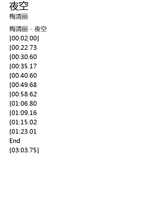 | [00:00.00] | 梅清丽 - 夜空 |