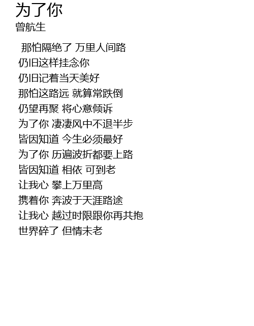 | Song | 为了你 |