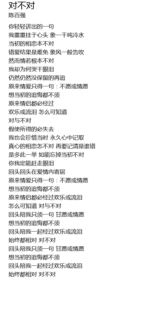 | [03:26.00] | shǐ zhōng dōu xiāng duì duì bú duì |