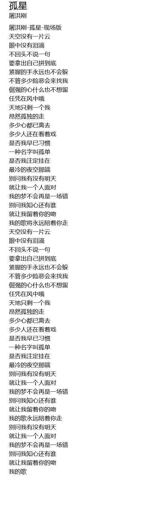 | [00:00.250] | 屠洪刚-孤星-现场版 |