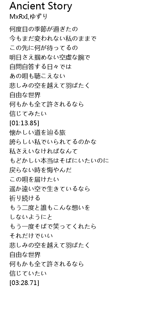 | [02:58.42] | 悲しみの空を越えて羽ばたく |