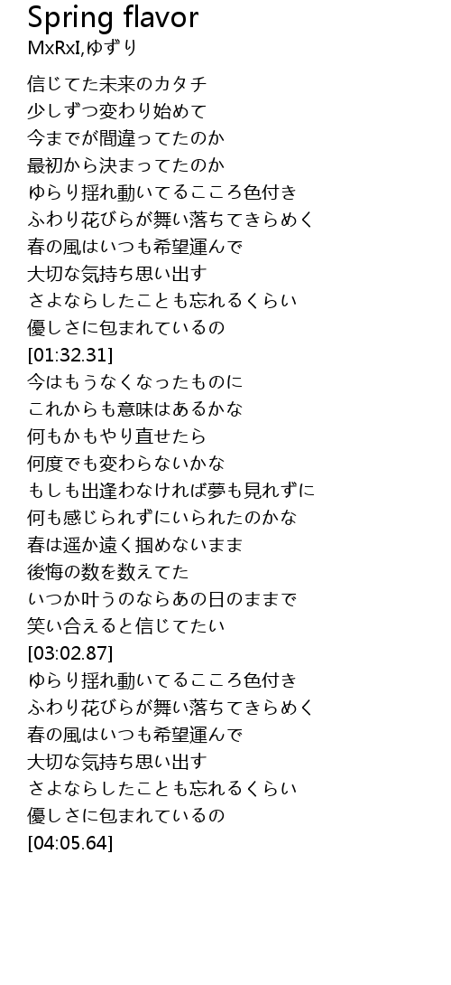| [01:02.02] | 春の風はいつも希望運んで |