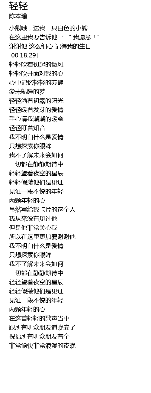 | [00:02] | 小熊哦,送我一只白色的小熊 |