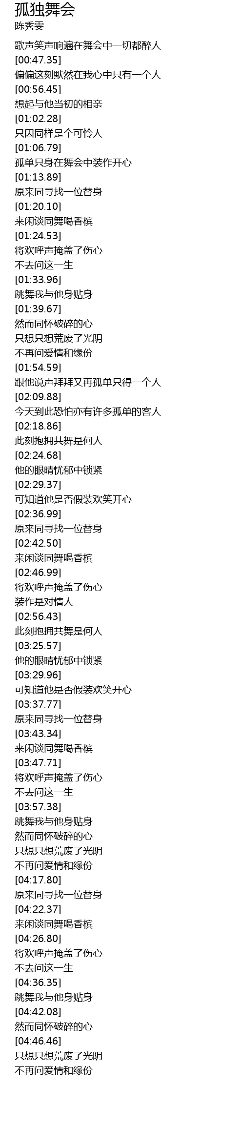 | [00:41.82] | 歌声笑声响遍在舞会中一切都醉人 |