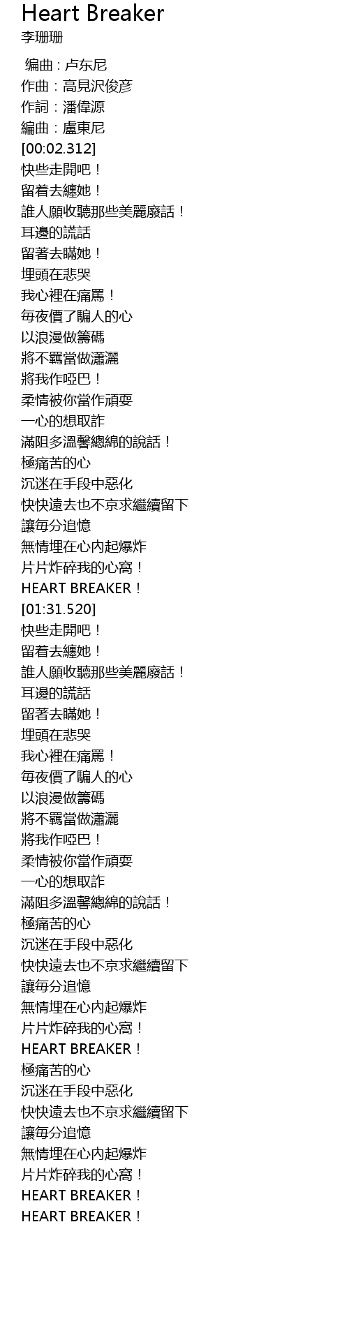 | [02:31.053] | piàn piàn zhà suì wǒ de xīn wō! |
