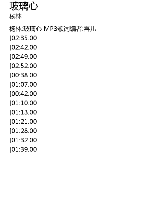 | [00:00.00] | 杨林:玻璃心 MP3歌词编者:喜儿 |