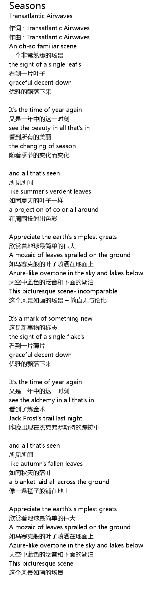 | 作词 : Transatlantic Airwaves | |