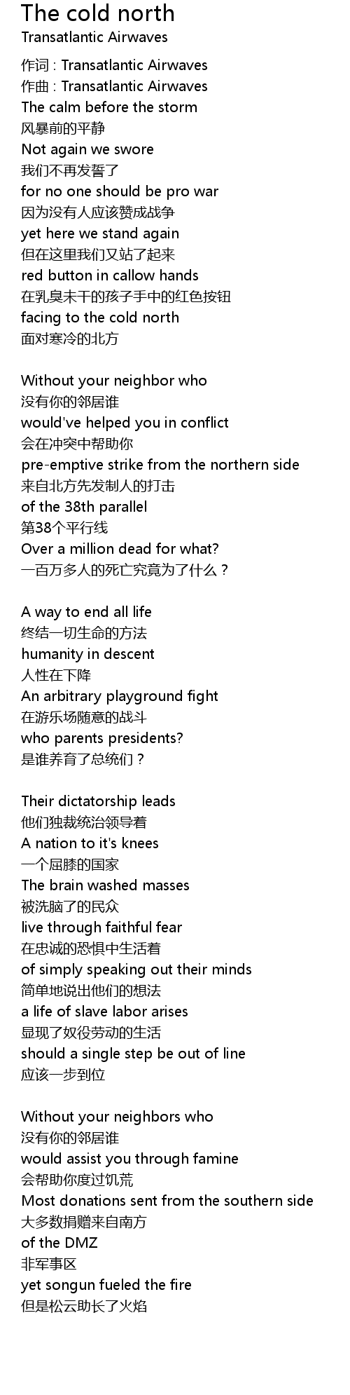 | Song | The cold north |