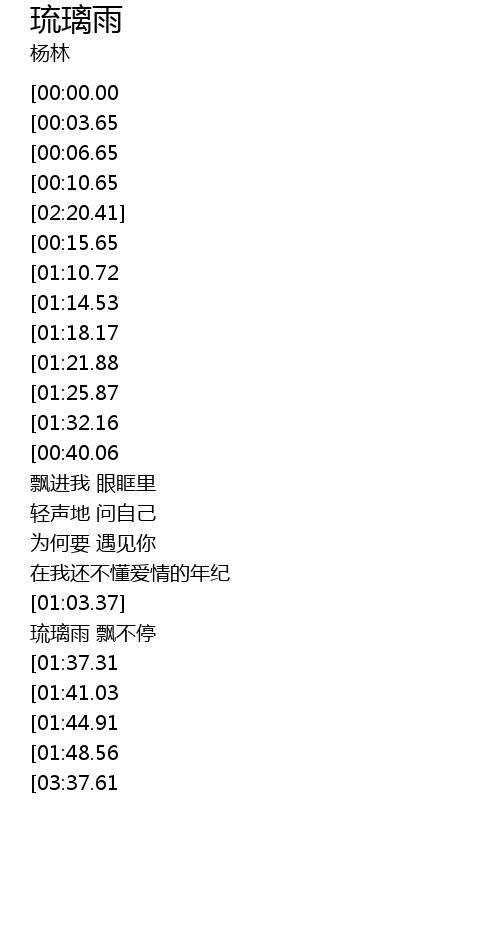 | [01:59.09][00:00.00] | 歌曲名:《琉璃雨》 |