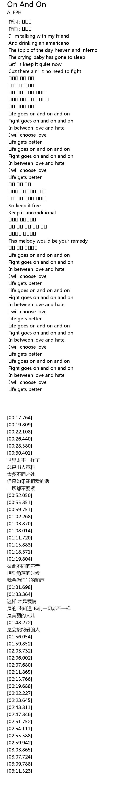 | [02:11.865] | Life goes on and on and on |