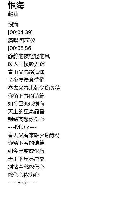 | [00:02.38] | 恨海 |