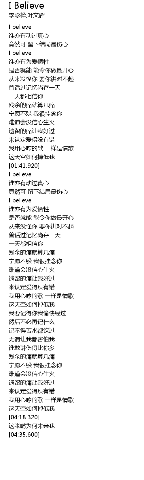 | [02:26.380] | yì tiān dōu xiāng xìn nǐ |